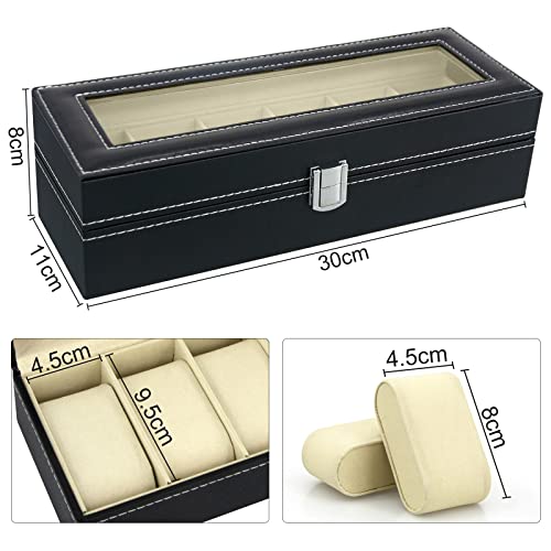 Porta Orologi Scatola Custodia Orologio: Cofanetti Orologi con 6 Scomparti - Cofanetto Porta Orologi in Pelle con Coperchio in Vetro & Cuscinetti Rimovibili - Scatole Portagioie Uomo Donna Regali