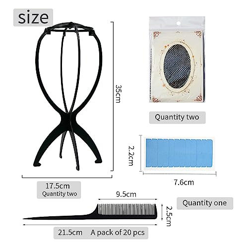 Dettagli del prodotto: riceverai 2 pezzi di supporto per parrucca nero (35 * 17,5 cm), 2 pezzi di retina per capelli neri, 1 pezzo di pettine a coda a punta nera e 1 pezzo di pellicola per parrucca blu