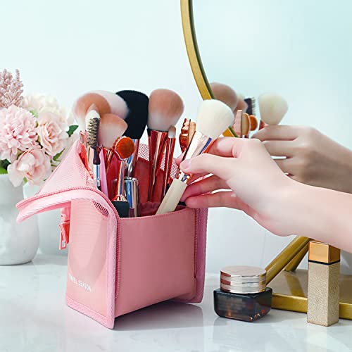 Porta Pennelli Cosmetico Multifunzionale, Borsa Porta Pennelli Multifunzione, Titolare di Spazzola Cosmetico, per Donne Ragazze Custodia da Viaggio Portatile per Pennelli per Trucco (Rosa)