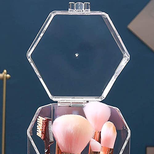 Porta pennelli da trucco, organizer trasparente con coperchio, organizer per pennelli da trucco in acrilico con perla, organizer per pennelli da trucco esagonale