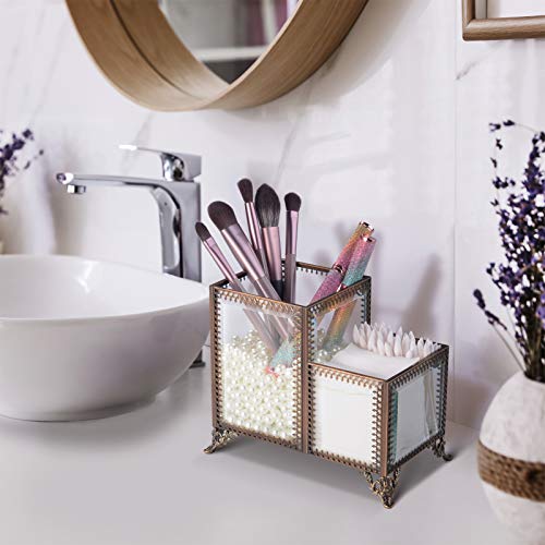 Supporto per pennelli da trucco in vetro: questo porta pennelli è realizzato in vetro di alta qualità e metallo di alta qualità. L'aspetto materiale in vetro trasparente consente di vedere quali cose trucco all'interno, bordo in metallo con un aspetto rustico più luminoso di altri.