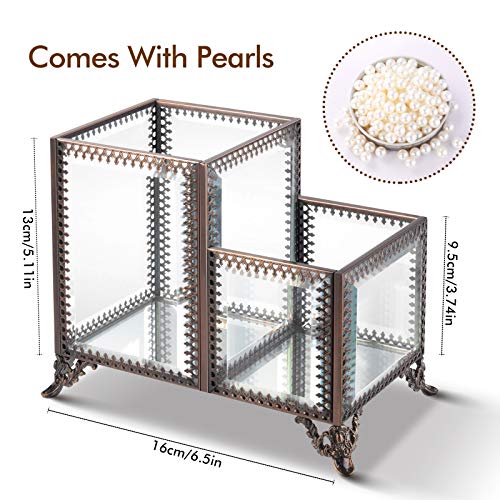 Porta pennelli per trucco Organizzatore per cosmetici in vetro 2 Scomparti Porta trucco per pennelli Rossetto, Organizzatore da scrivania Portapenne per scrivania da ufficio Comò decorativo