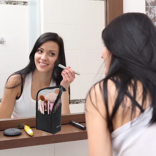 Porta Pennelli per Trucco, Portatile Borsa per Pennelli da Trucco da Viaggio, Impermeabile Portapennelli Cosmetico Multifunzionale per Ragazze Donna (Nero)