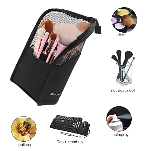 ◆ Materiale Eccellente: Il sacchetto della spazzola del trucco è realizzato in materiale di fibra di poliestere di alta qualità, il supporto della spazzola del trucco è durevole, pieghevole, impermeabile e facile da pulire e pulire con cerniera forte e liscia.