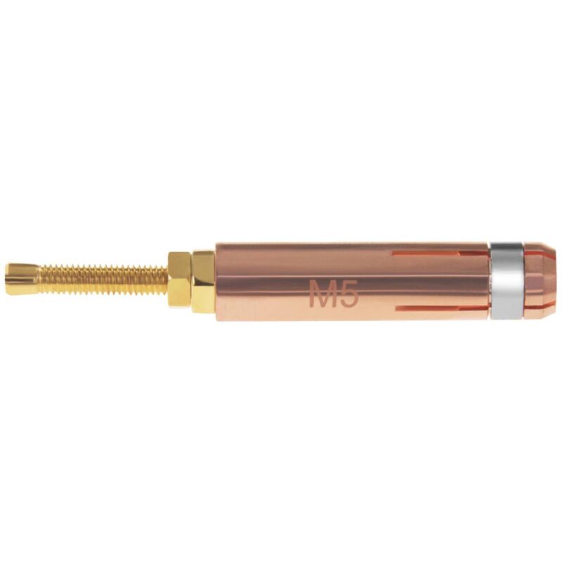 Porta perni con filettatura M5 - in rame I porta perni a saldare rappresentano l'elemento di giunzione tra il materiale portante e i componenti di fissaggio. Il porta perni CHUCK M5 del marchio Stamos Germany è adatto anche per viti, chiodi e cilindri con diametro 5 mm (M5) e lunghezza 40 mm. Questo accessorio è inoltre compatibile con le nostre saldatrici per perni S-STUD1600 e S-STUD2500 del marchio Stamos Germany nonchè con altri modelli simili. Il perno a saldare viene inserito nell'apposito supporto e con l'ausilio della saldatrice per perni viene dunque fissato sulla superficie interessata. Ciò avviene grazie a una molla a compressione che spinge la pinza porta perni. Realizzato in rame, il porta perni a saldare è resistente alle corrosioni e all'usura. Si tratta quindi di un prodotto che dura nel tempo! Il porta perni CHUCK M5 del marchio Stamos Germany è compatibile con i seguenti modelli di saldatrici per perni.