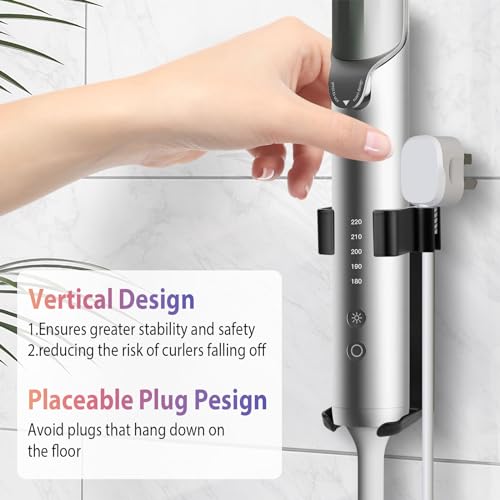 Dimensioni perfette: Il porta dyson airwrap da parete ha una lunghezza di 12 cm, una larghezza di 5,2 cm, un diametro interno di 4,5 cm e un diametro interno di 3 cm nella parte inferiore, perfettamente compatibile con Dyson Airwrap e molte altre gamme, e si adatta anche a ferri arricciacapelli, piastre, pettini raddrizzanti e altri strumenti per parrucchieri con un diametro di 3-4,5 cm.