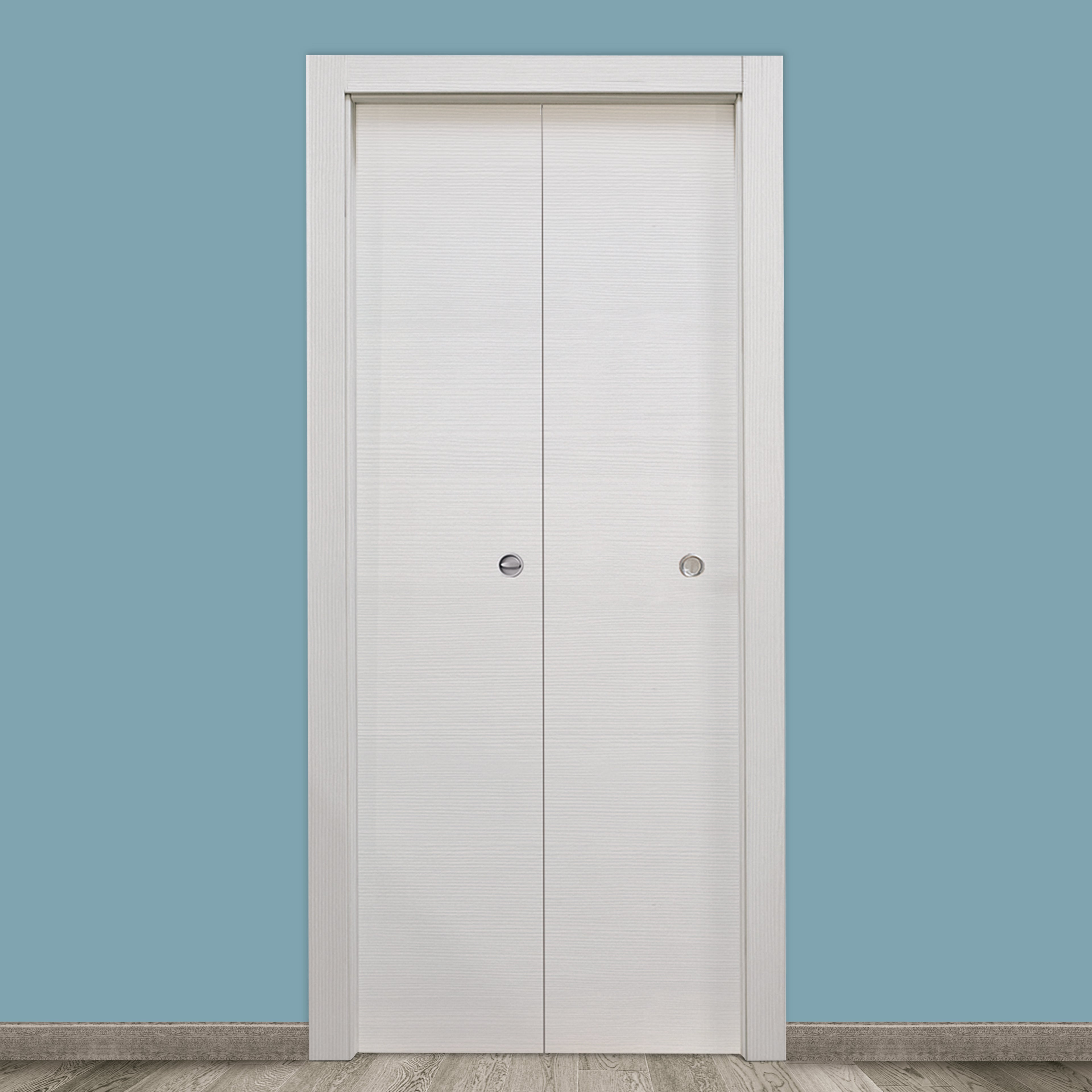 In laminato. Maniglia da acquistare separatamente. Qualità Standard, porta con un buon rapporto qualità e budget. Perfetta per una casa di proprietà