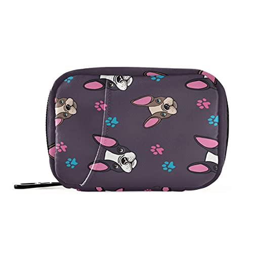 Porta-pillole con bulldog francese, organizer settimanale per pillole, con chiusura lampo in velcro per viaggi, lavoro, scuola