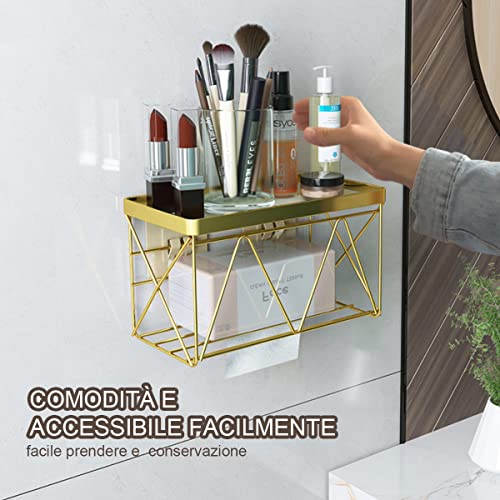 Porta rotolo di carta igienica autoadesivo,non richiede foratura,forte adesione e impermeabile-Portarotolo Carta Igienica Senza Foratura per Bagno e Toilette(Oro)