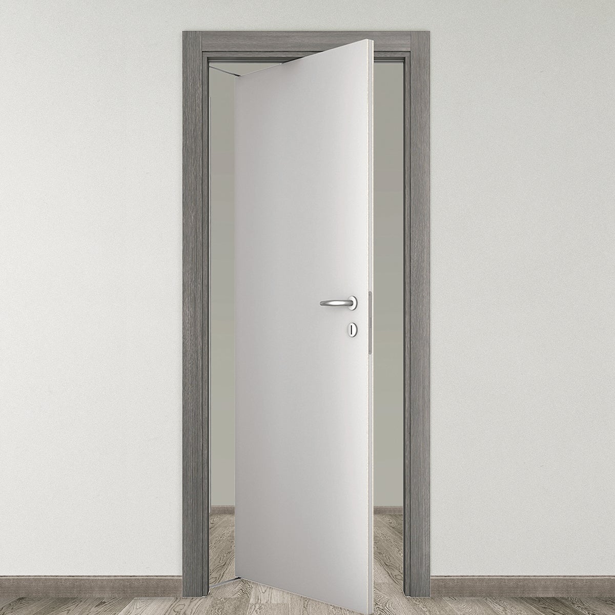 Porta Nida roto 80x210 sx anta RAL 7047 / telaio pietra. Salvaspazio