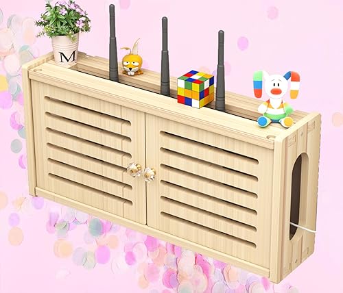Porta Router WiFi da Parete Legno Contenitore per Router WiFi Scatola Nascondi Cavi Legno Supporto Telefono Parete Scatola,C-48x24cm