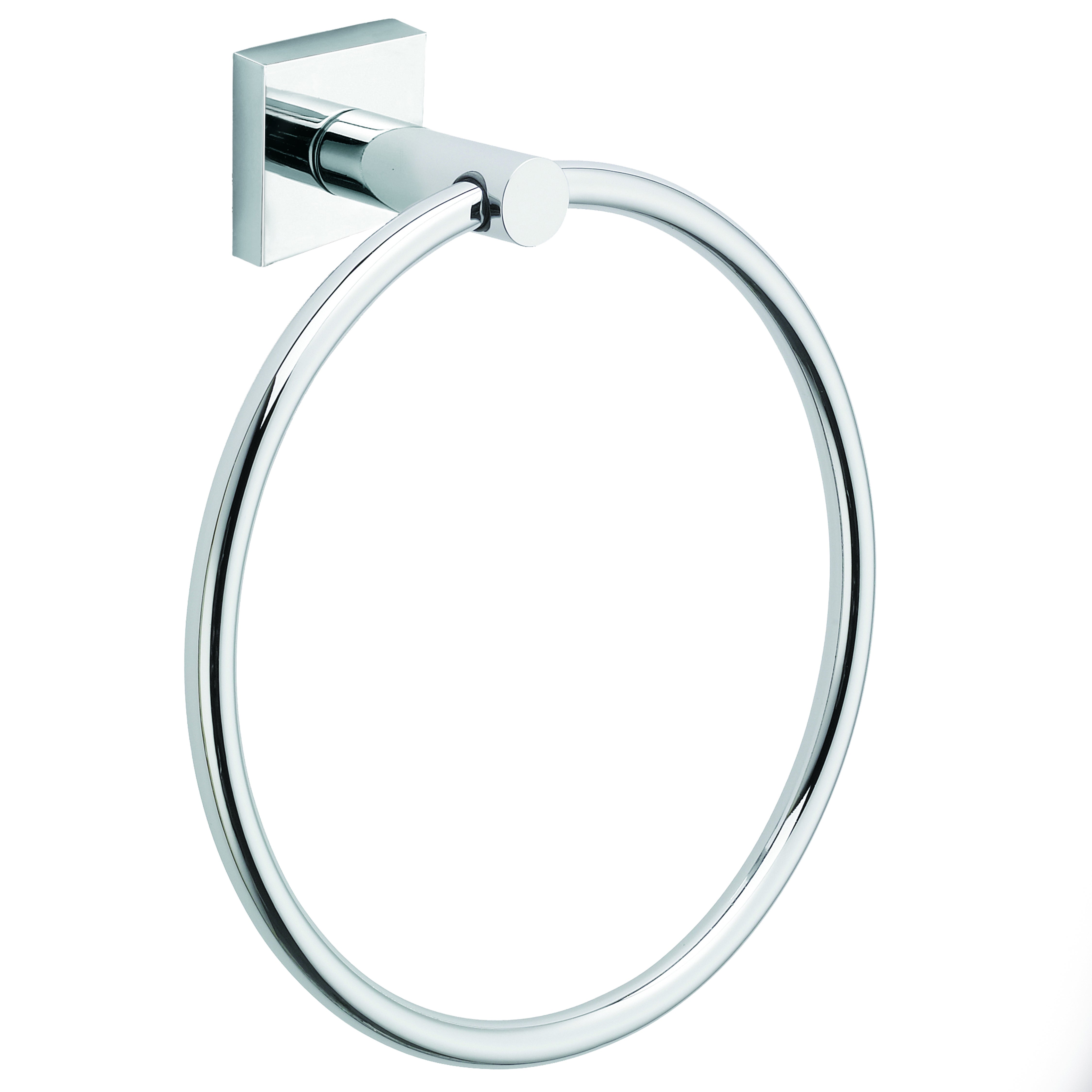Porta salviette ad anello in zama con tubo in acciaio inox, L 18,3 x H 20,2 x P 6,8 cm. Doppia modalità di fissaggio (a tassello o con colla). Ideale per fissare senza forare la parete