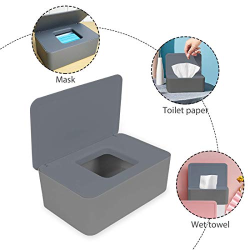 Porta Salviette Umidificate, Salviettine Umidificate con Coperchio, Porta Scatola Dispenser, Contenitore Salviette Umidificate, Tovagliolo Scatola per Home Office, Grigio