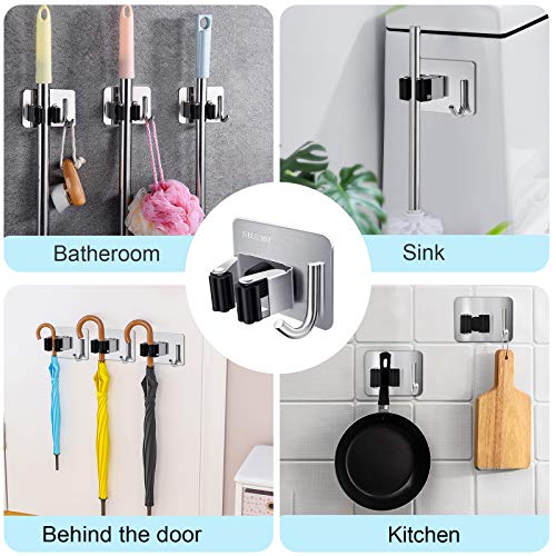 【Installazione Semplice】 Porta scope viene fornito con potenti adesivi 3M sul retro che si adattano a una varietà di diverse superfici delle pareti, è resistente e non danneggia il muro.