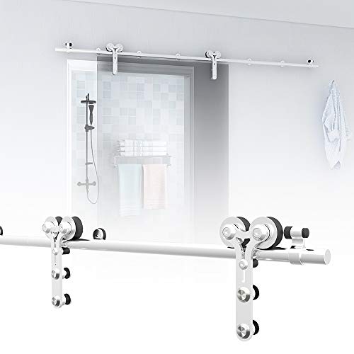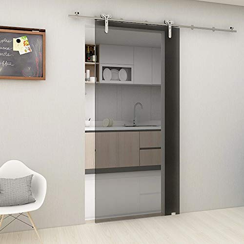 Kit Porta Scorrevole da 6FT / 180 cm con Binario Scorrevole, Acciaio inossidabile Armadi Scorrevoli Kit, per Porta Scorrevole a Vetro Singolo