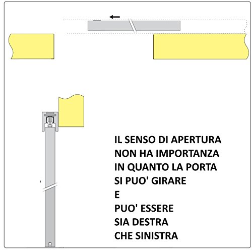 MANTOVANA: in legno rivestita in laminatino. Binario: in alluminio portata Kg. 80, con carrelli su cuscinetti a sfera.