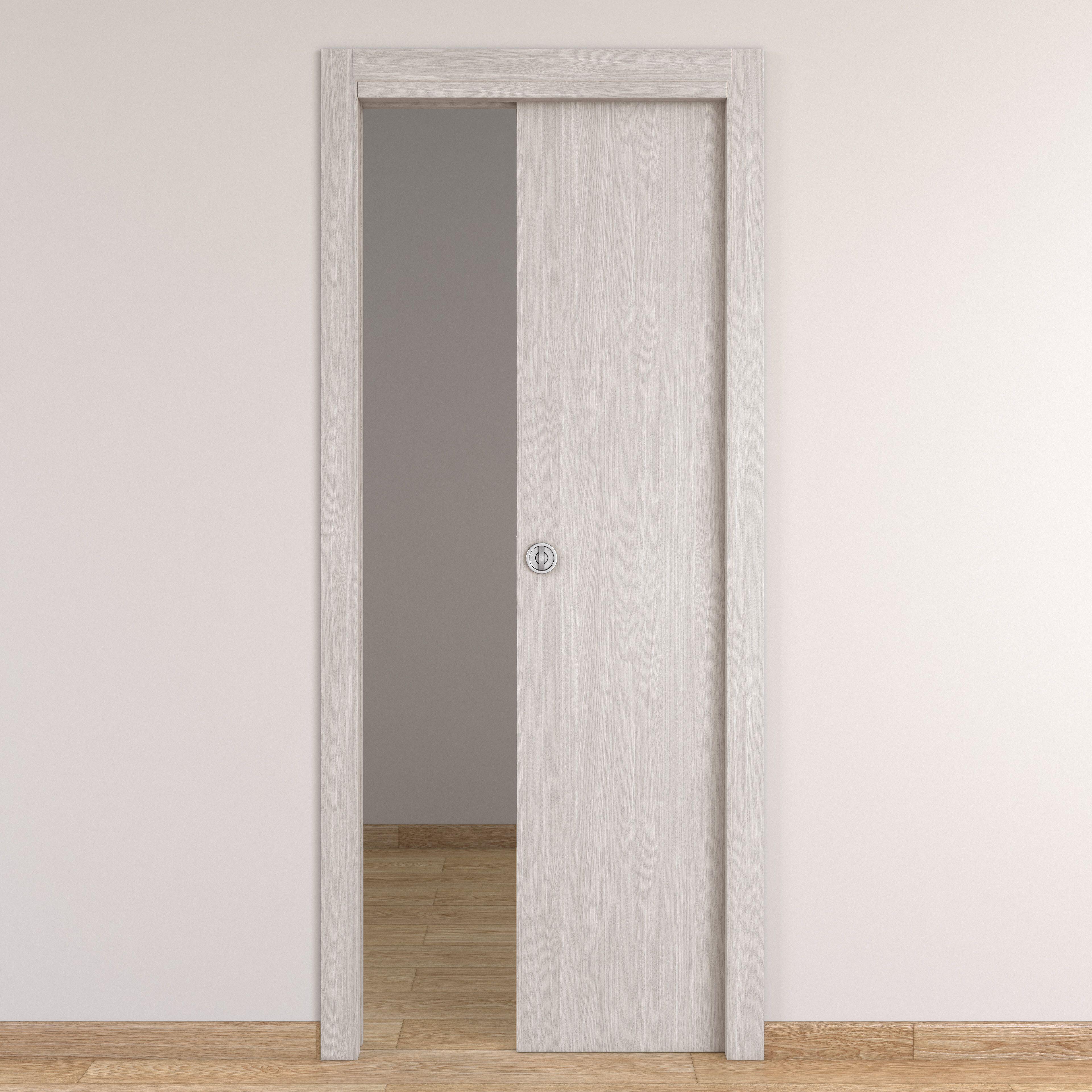 In laminato, rivestita. Maniglia inclusa. Qualità Standard, porta con un buon rapporto qualità e budget. Perfetta per una casa di proprietà. Apertura scorrevole interno muro, ideale per stanze con spazi ridotti. Finitura resistente ai graffi molto facile da pulire. Lascia libere le pareti senza ingombro di apertura.. Dotata di serratura per garantire la privacy