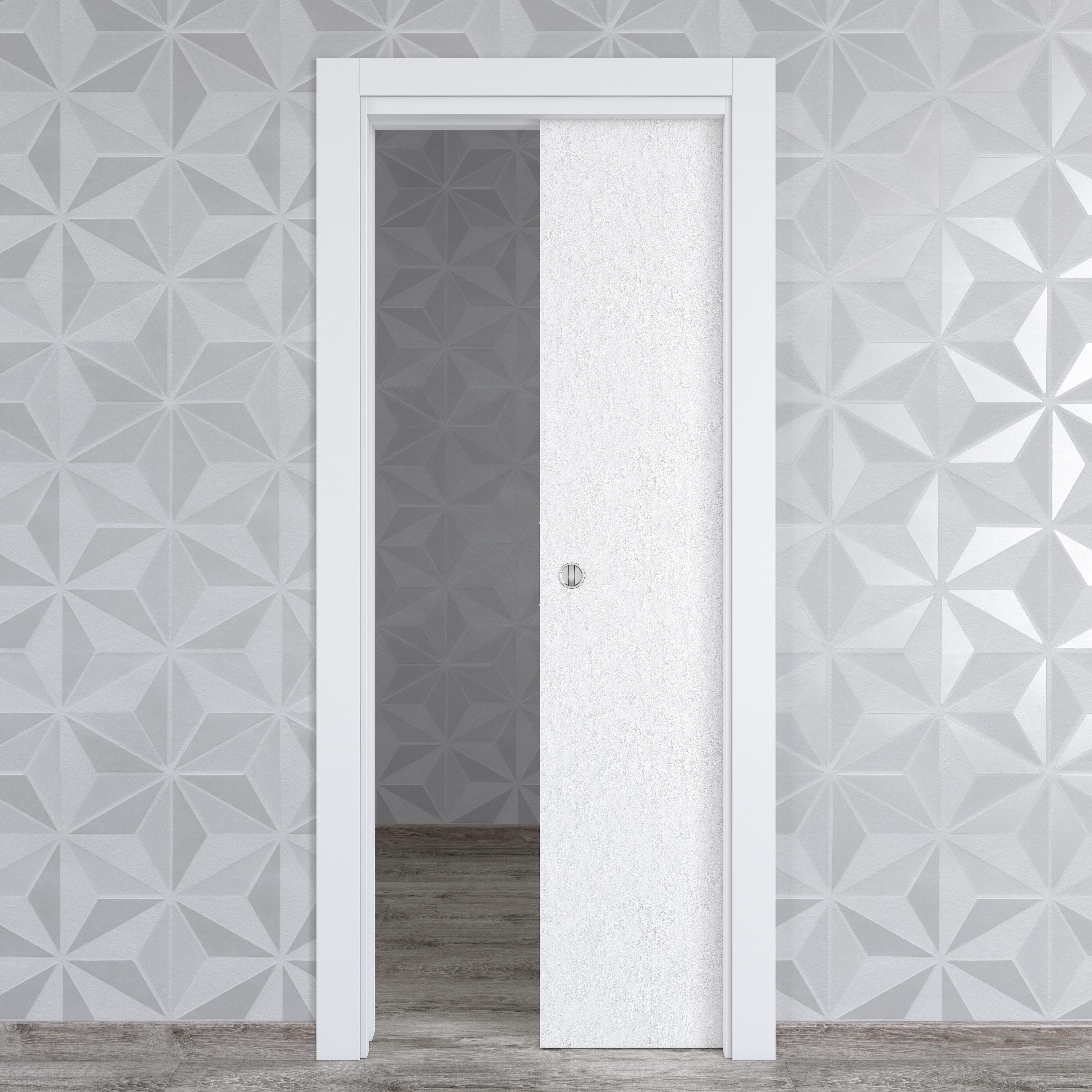 In legno, laminata, telaio dritto, coprifili ad incastro. Maniglia inclusa. Qualità Excellens, porta di alta qualità che oltre ad essere funzionale valorizza anche gli ambienti. Apertura scorrevole, ideale per stanze con spazi ridotti. Finitura resistente e funzionale. Il laminato resiste ai graffi ed è molto facile da pulire. Effetto spazzolato che riproduce le venature del legno donando un effetto materico molto naturale. Lascia libere le pareti senza ingombro di apertura.