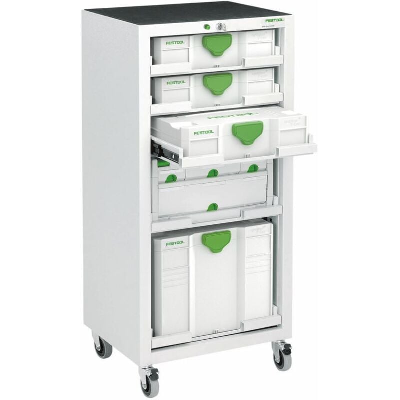 Systainer-Port SYS-PORT 1000/2 Ordine su ruote. -Freno di bloccaggio per una sicura stabilità -Il sistema di custodia per SYSTAINER e SORTAINER -Mobile, grazie alle rotelle girevoli supportate da cuscinetti a sfera (nel Sys-Port 500/2 disponibili solo come accessori) -I ripiani sono regolabili in altezza Principali applicazioni: -Tutto a portata di mano sul posto di lavoro, anche grazie alle diciture ben visibili -non certificati per il montaggio di veicoli. Dotazione: -struttura resistente in acciaio -5 x -con 5 telai per SYSTAINER estraibili -4 ruotine piroettanti supportate da cuscinetti a sfera (2 con freno di bloccaggio) -senza SYSTAINER -in cartone Dati tecnici: Misure (L x P x H) 400 x 500 x 1100 mm Peso 33 kg