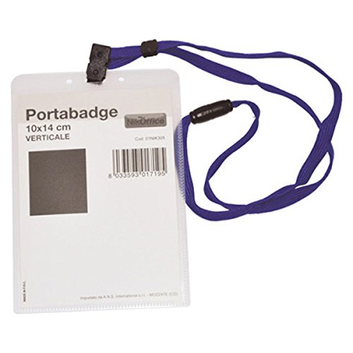 30 PORTABADGE FLESSIBILE CON LACCETTO BLU 10x14 cm VERTICALE IN PVC TRASPARENTE
