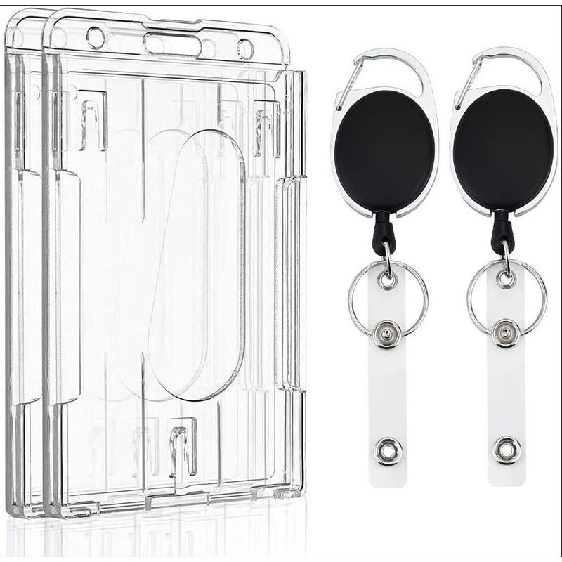 Dettagli taglia: Porta badge per impieghi gravosi Dimensioni (L x L): 9,9 x 5,8 cm, dimensioni slot per schede (L x L): 5,6 x 8,9 cm, 5 mm di spessore, molto adatto per carte d'identità, carte di credito, tessere associative, chiavi di hotel, crociere, abbonamenti per autobus per bambini, patenti di guida, tessere tessere identificative di scuole, ecc. Materiale PC resistente: Il portabadge è realizzato in materiale PC rigido trasparente di alta qualità, che può impedire che il tuo badge identificativo con foto si graffi, si pieghi o si ammacca. Accesso facile: il portabadge in plastica ha una fessura per il pollice che aiuta fai scorrere facilmente la scheda memorizzata all'interno su e giù. Ideale per chi ha bisogno di un accesso frequente a due carte. Ideale per il personale ospedaliero, infermieri, impiegati e agenti di polizia. 【Previene le perdite】 Il design a caricamento dall'alto è comodo da sostituire o attaccare a cordini, bobine di badge, ecc. Il robusto portabadge