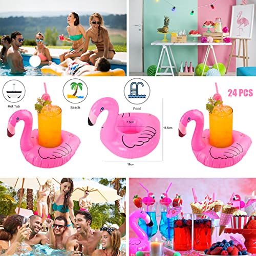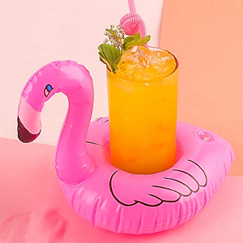 Portabicchieri con fenicottero, portabevande gonfiabili, per piscina, vasca idromassaggio, nuoto, spiaggia, galleggiante, giocattoli acquatici, decorazioni hawaiane Luau feste (confezione da 12)