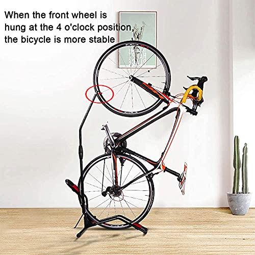 1 Multifunzione: questo supporto per bici può parcheggiare la bici verticalmente o orizzontalmente. Tocca a voi. Ha una staffa che forma un triangolo con la base del prodotto. Quando la bici è spinta dentro, la protegge dal ribaltamento o dalla caduta.