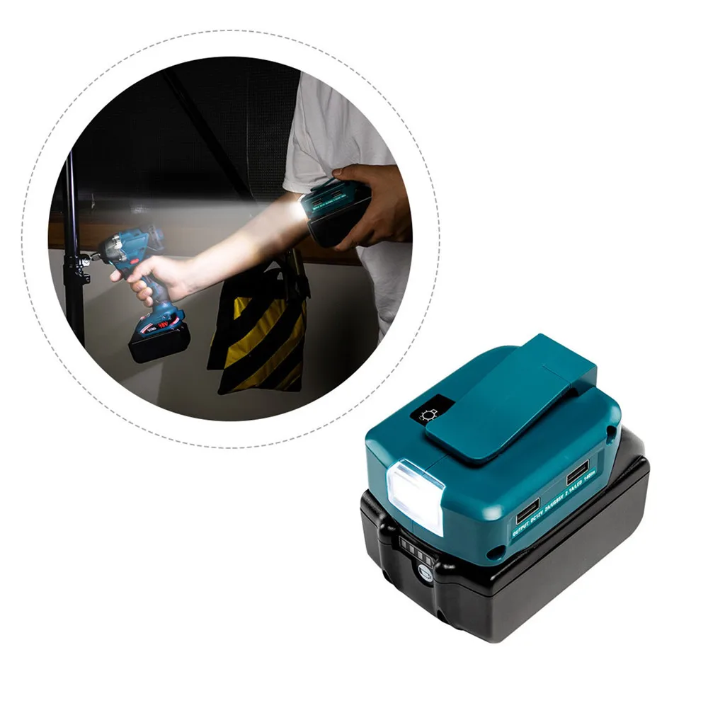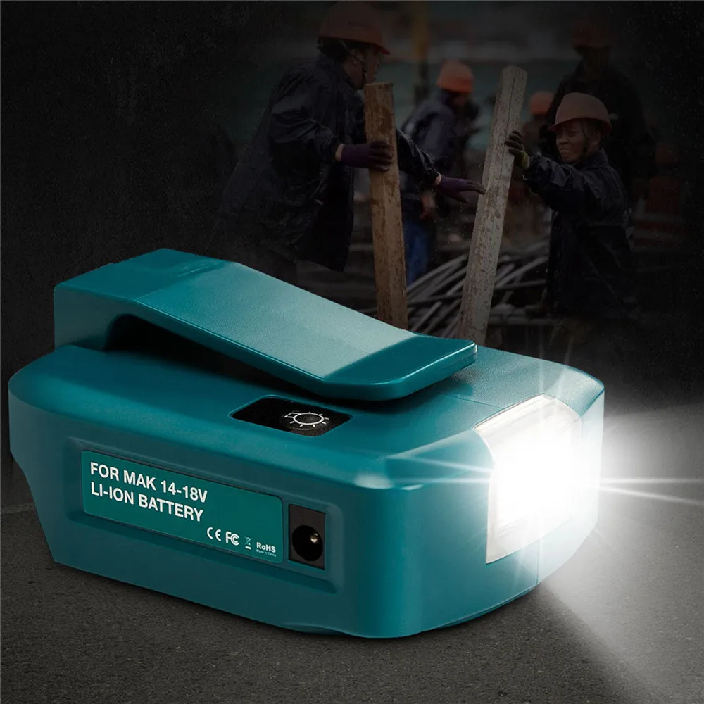 Portable 14.4V /18V 200LM LED Light Li-ion Battery Dual USB Battery Converter for Makita Battery Outdoor Flashlight Accessories