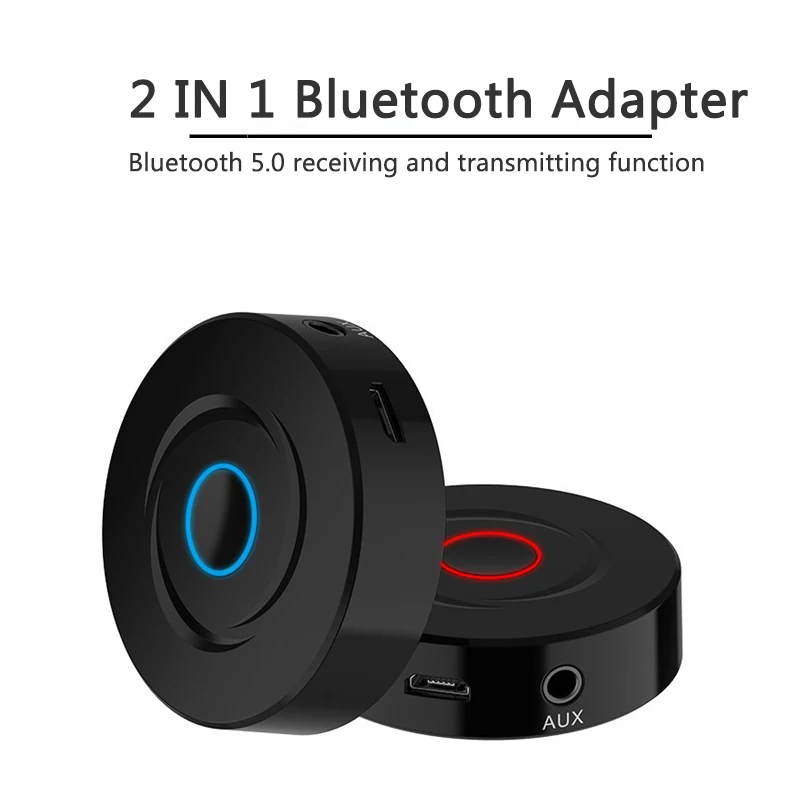 Portable 2-in-1 Bluetooth-compatible 5.0 Receiving Transmitter 3.5mm AUX Stereo Audio Round Adapter For Car TV PC Earphone
