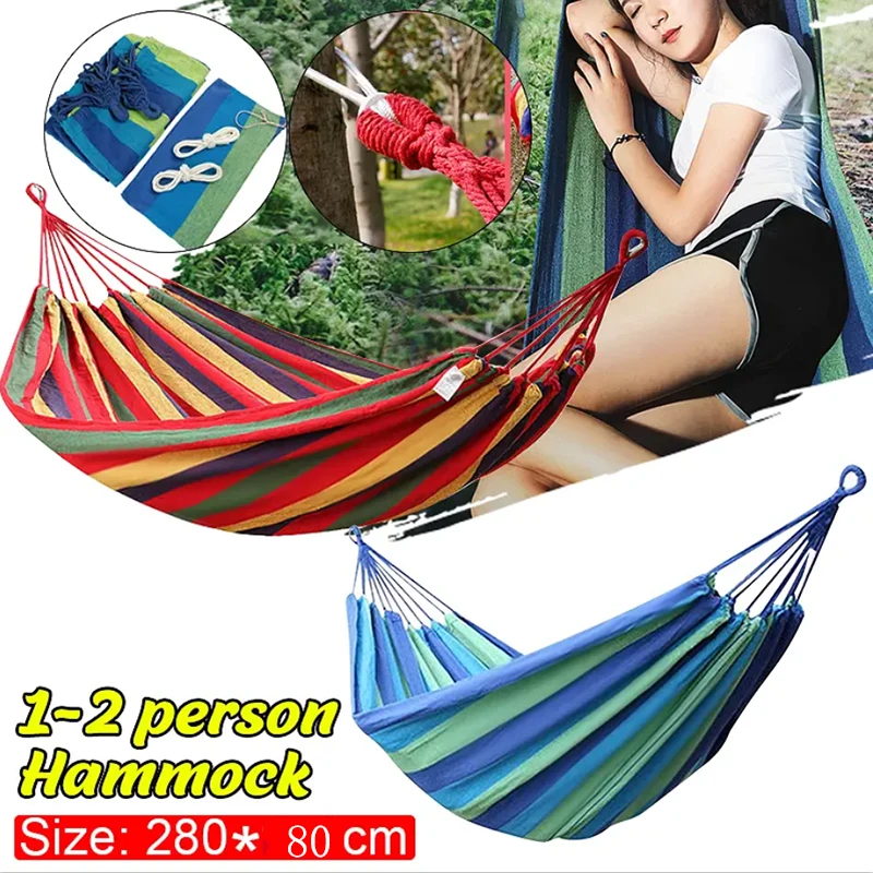 Portable Canvas Leisure Hammock Outdoor Hammock Garden Sports Home Travel Camping Swing Canvas Stripe Hang Bed Hammock Outdoor