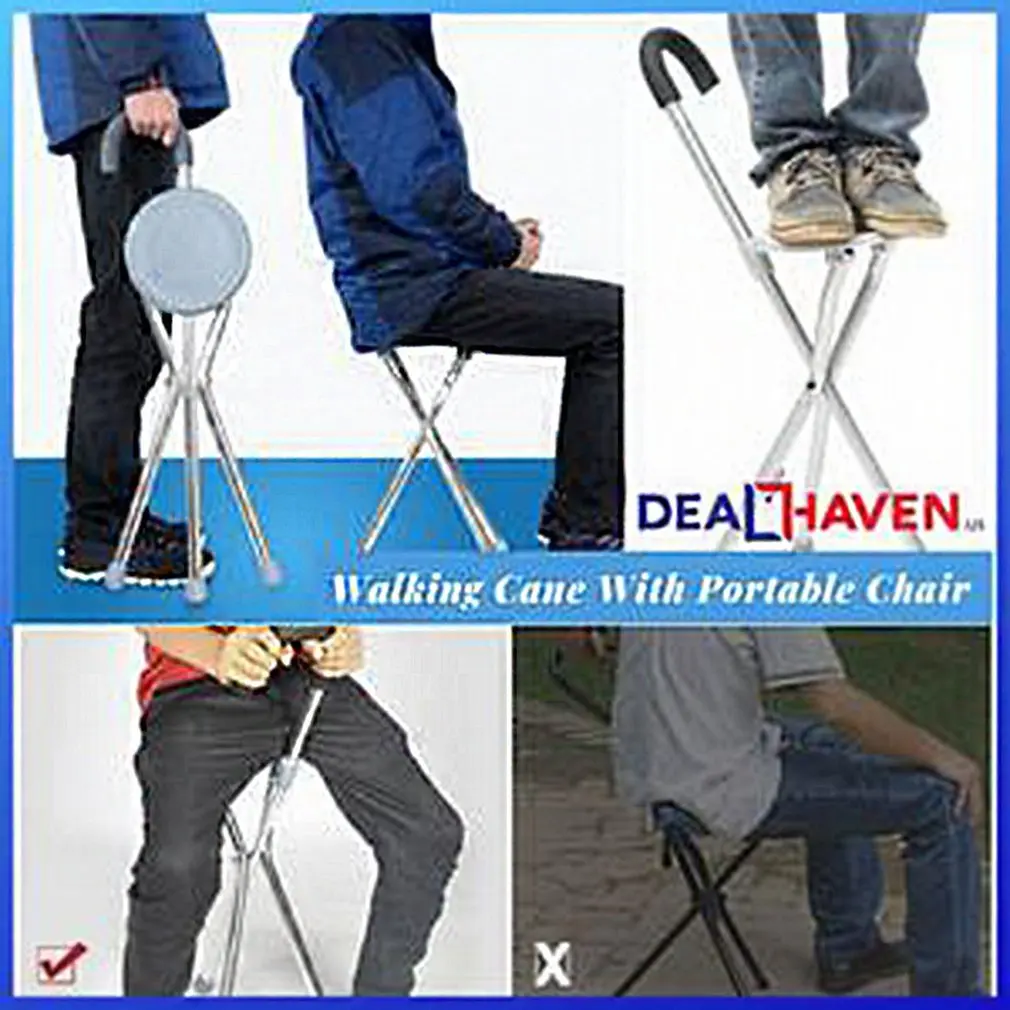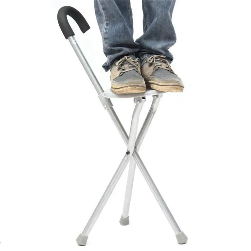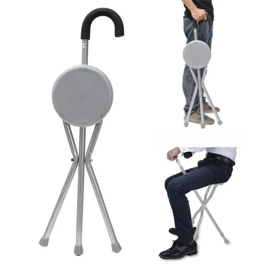 Portable Iron Cane Stool Old Man Walker Three-Legged Cane Stainless Steel Cane Stool With Seat Cane Stool