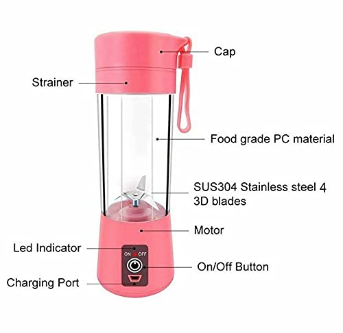 Portable Juice Blender Usb Mixer Sport Juicer Machine Smoothie Blender 380 ml, Ice Blender Mixer Home/Office/Sports/Travel/Outdoors (Purple)