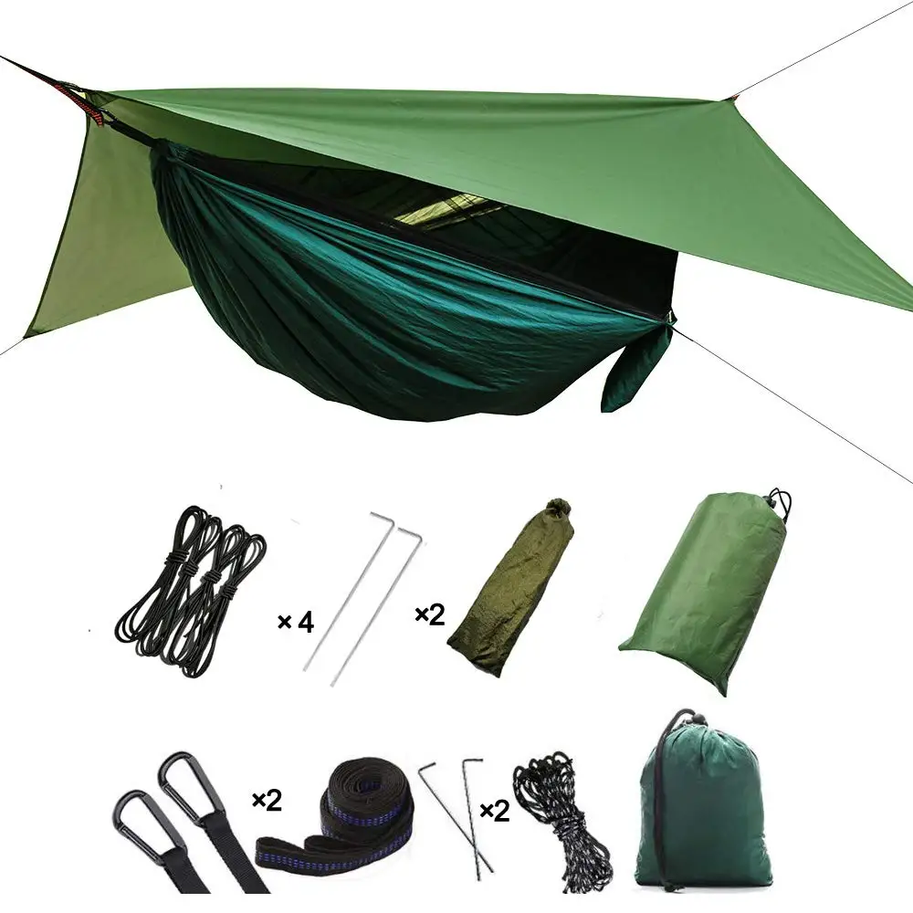 2 in 1 Portable Lightweight Outdoor Camping Hammock Mosquito Net Hammock Tent With Waterproof Canopy Awning Netting Set