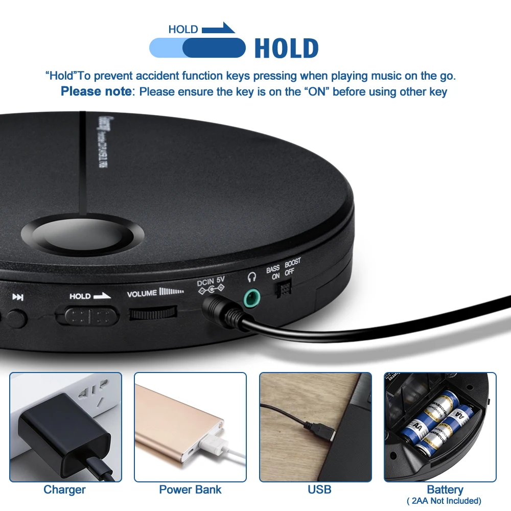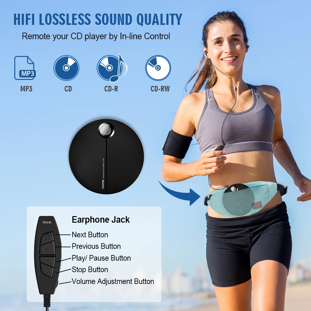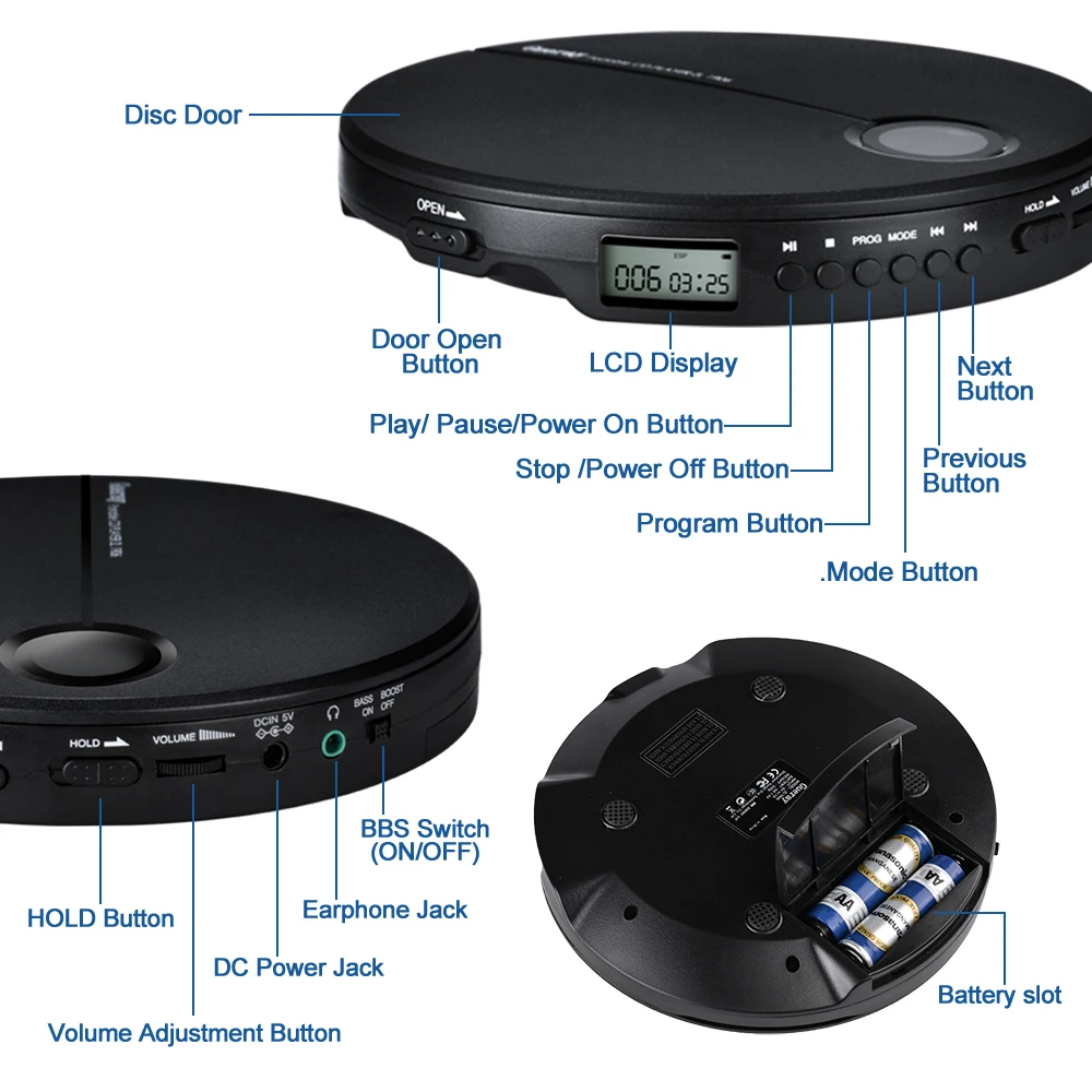 Portable CD Player with Earphones HiFi Music Compact Walkman Player Reproductor CD Anti-Shock Personal Car Music Disc Player