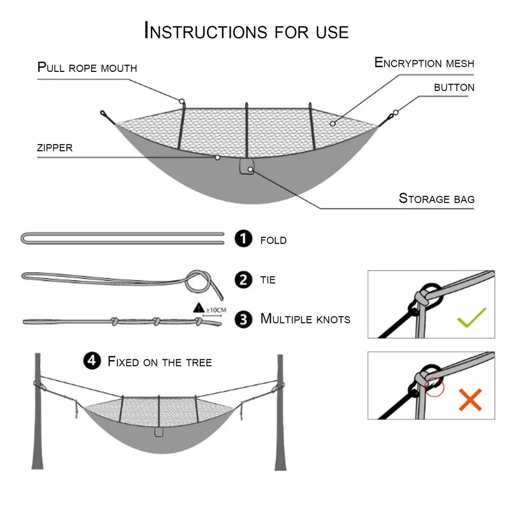 Portable Size Lightweight High Strength Mosquito Net Parachute Hammock Hanging Bed for Outdoor Camping Hunting