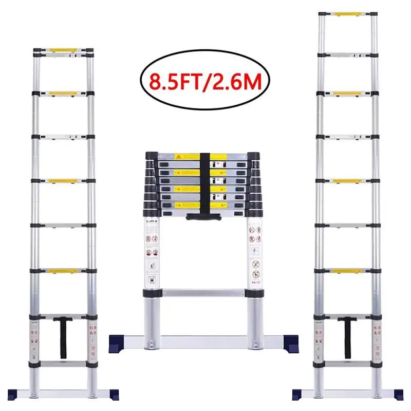 2.6M Portable Telescopic Aluminum Ladder Folding 9-step Telescopic Ladder Household Ladder Multifunctional Straight Ladders HWC