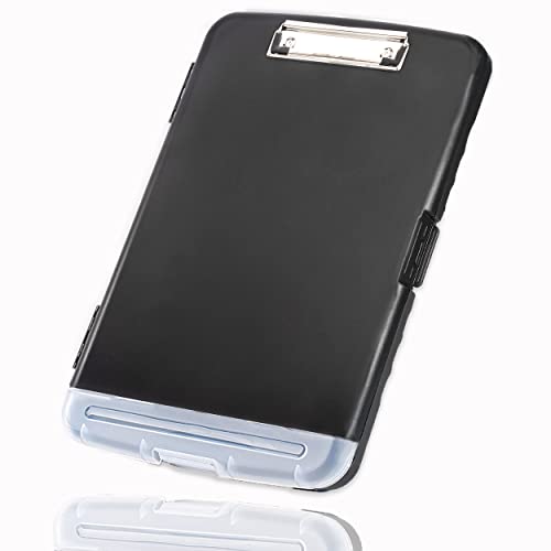 Portablocco A4 in plastica apribile con Scomparto Portadocumenti, Sottile Leggero Porta Appunti Ospedali Aule, infermieri, Studenti, Scuola, Ufficio, Nero