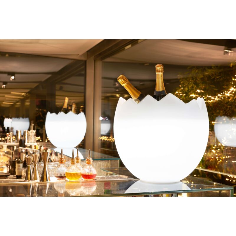 Kalimera, un portabottiglia alternativo spezzare l'atmosfera Kalimera è il co-protagonista indispensabile per illuminare i brindisi con ironia e giocosità. Kalimera, in greco “buongiorno”, rievoca il guscio di un uovo alla coque ed ideale per regalare un tocco informale ad ambientazioni indoor e outdoor, con semplicità ma senza rinunciare all'eleganza e alla magia dei complementi di arredo luminosi in polietilene tipici dell'intera produzione SLIDE. MISURE: altezza 40 cm diametro 44 cm Su richiesta disponibili anche con colorazioni laccate o bianca luminosa. SCHEDA PRODOTTO