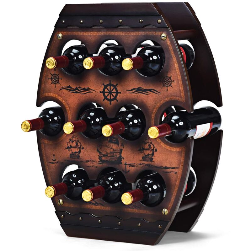 INFORMAZIONI Robusto e stabile: Realizzato in pannelli compensato e chiodi stile da vintage, il portabottiglie potrà essere usato per lungo tempo e non sarà facilmente deformabile. Il base del portabottiglie è piatto, rende la stabilità e sicuro del articolo. Capacità di contenere 10 bottiglie: La struttura del portabottiglie è in grado di ospitare 10 bottiglie. Ogni parte è abbastanza spazioso per contenere bottiglie in altezza e larghezza. L'intero portabottiglie non occuperà troppo spazio sul tavolo. È molto adatto per l'uso quotidiano in casa. Perfetto anche come esposizione da banco: Questo portabottiglie indipendente può essere posizionato non solo su un tavolo un piano di lavoro. Oltre all'utilizzo pratico di contenitore di bottiglie, può funziona anche come un ornamento chic. Leggero e facile da spostare: Le dimensioni di questo portabottiglie sono 59 x 45 x 20 cm. Il portabottiglie compatto è abbastanza leggero da poterlo spostare o trasportare facilmente. Il telaio del