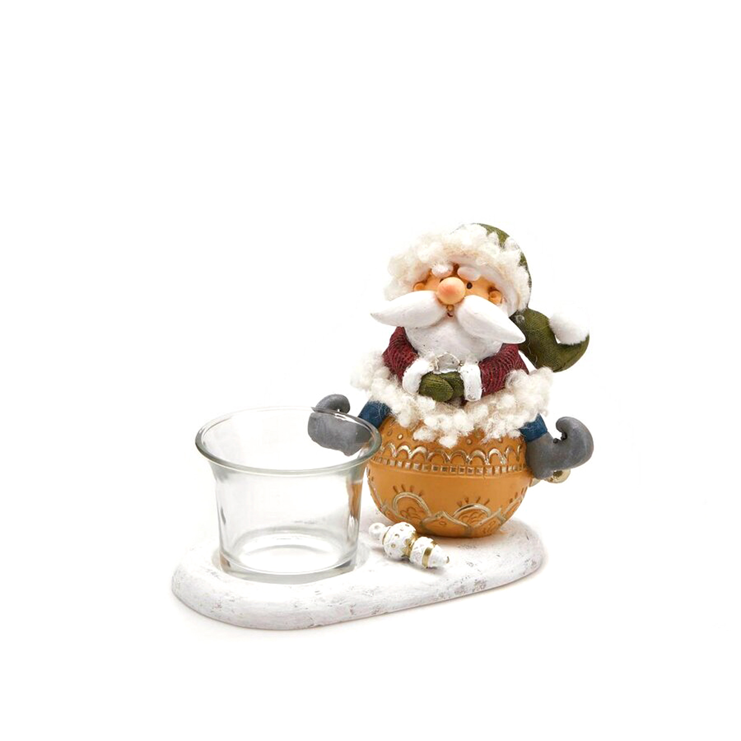Hai notato che carina questa decorazione di Natale? Il piccolo Babbo Natale è realizzato in poliresina e rifinito nei minimi dettagli. Non è solo decorativo, questo soprammobile è anche un funzionale portacandela. Nel piccolo vasetto in vetro c'è infatti spazio per un cerino: potrai illuminare la tua mise en place o aggiungere un punto di luce all'arredo della casa. Carina anche come idea regalo! Dimensioni: 12x4x10 cm.