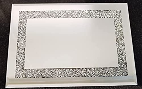Portacandele in cristallo schiacciato rettangolare con strass e vassoio decorativo a specchio (20 x 30 cm)