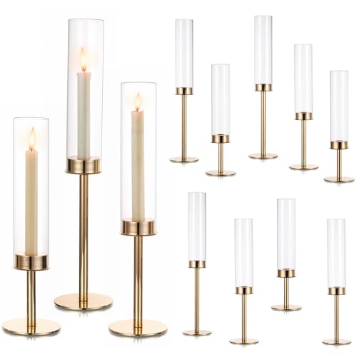 Portacandele Oro Portacandele: Hewory 12Pz Portacandele Uragano per Candele Taper, Portacandele In Metallo Con Cilindro di Vetro per Matrimonio Festa Pranzo Tavolo Centrotavola Casa Decorazione