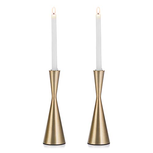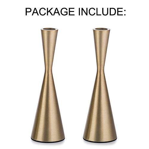 Portacandele in Metallo, Centrotavola Moderna Design Regali Celebrazione, Portacandele Conico per La Festa di Nozze, Candelieri (Ottone Dorato, 2 x Piccolo)
