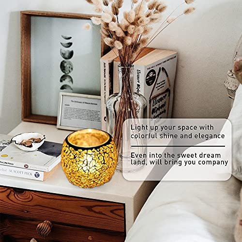Decorazione artistica: i portacandele a mosaico sono realizzati a mano con piccoli pezzi di vetro assemblati in stile mosaico e tenuti in posizione da gesso intorno a una forma di cilindro in vetro trasparente.