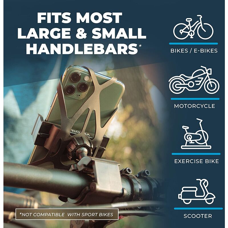 UNIVERSALE - Compatibile con smartphone e dispositivi fino a 3,5 pollici di larghezza, i nostri supporti per telefono da bici e moto si adattano a manubri da 7/8" - 1-1/4" di diametro. NOTA: Non adatto per manubri clip-on per bici super sportive. SICURO - Dalle mountain bike alle cyclette alle moto, i nostri supporti per telefono premium per manubri da bicicletta ti consentono di tenere saldamente il tuo dispositivo con due punti di contatto, premium impugnature in plastica e rete in silicone. SICURO - Questi accessori per moto sono realizzati in materiale plastico di alta qualità con rete in silicone resistente, a differenza della gomma, non si rompono o si rompono in condizioni meteorologiche estreme. Compatibile - Questi accessori per bici per adulti sono compatibili con iPhone serie 13, 12, 11, SE (2a generazione), XS Max, XS, XR, X;