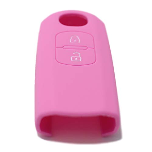 Portachiave - Guscio Chiave Auto in Silicone per Telecomando Mazda 2 3 5 6 BT50 CX-5 CX-7 CX-9 MX5 M3 M5 MZ2 RX8 (vedere compatibilità nelle foto) 2 Tasti (ROSA)