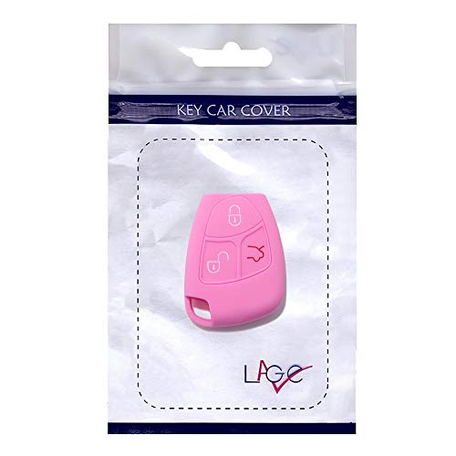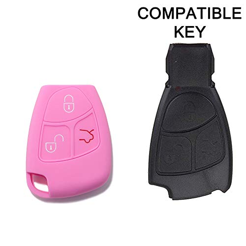 Portachiave - Guscio Cover Chiave in Silicone per Telecomando Auto Mercedes-Benz 3 tasti (vedere compatibilità nelle foto) Classe A B C E S CL ML CLK CLS SLK (ROSA)