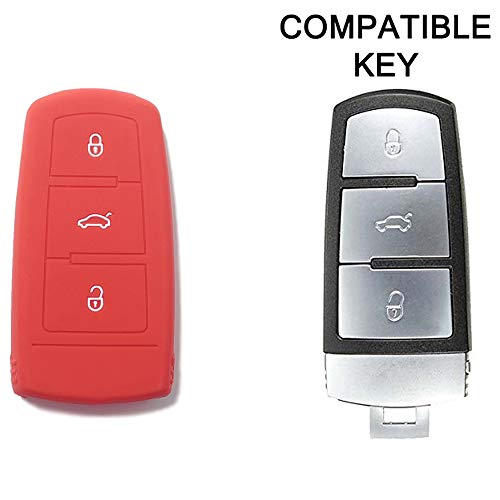 Portachiave - Guscio Cover Chiave in Silicone Telecomando Auto Volkswagen 3 tasti (vedere compatibilità nelle foto) Polo Golf Passat Touran Bora Tiguan Sharan Jetta Cady Scirocco Magotan CC (ROSSO)