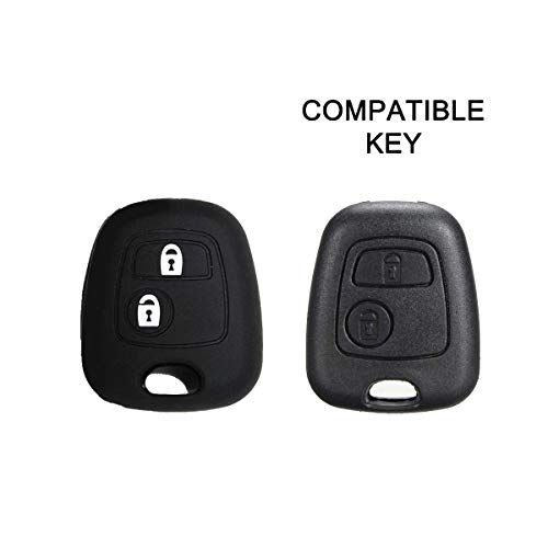 Portachiave - Guscio Cover Chiave in Silicone Telecomando Auto Citroen C1 C2 C3 C5 e Peugeot 103 106 107 206 207 307 308 406 407 508 806 1007 (vedere compatibilità nelle foto) 2 Tasti (NERO)