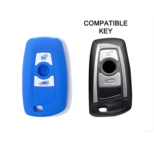 Portachiave - Guscio Cover Chiave in Silicone per Telecomando Auto BMW 3 tasti Keyless-Entry (vedere compatibilità nelle foto) Serie 1 3 4 5 6 7 Z4 X3 X4 X5 X6 (BLU)